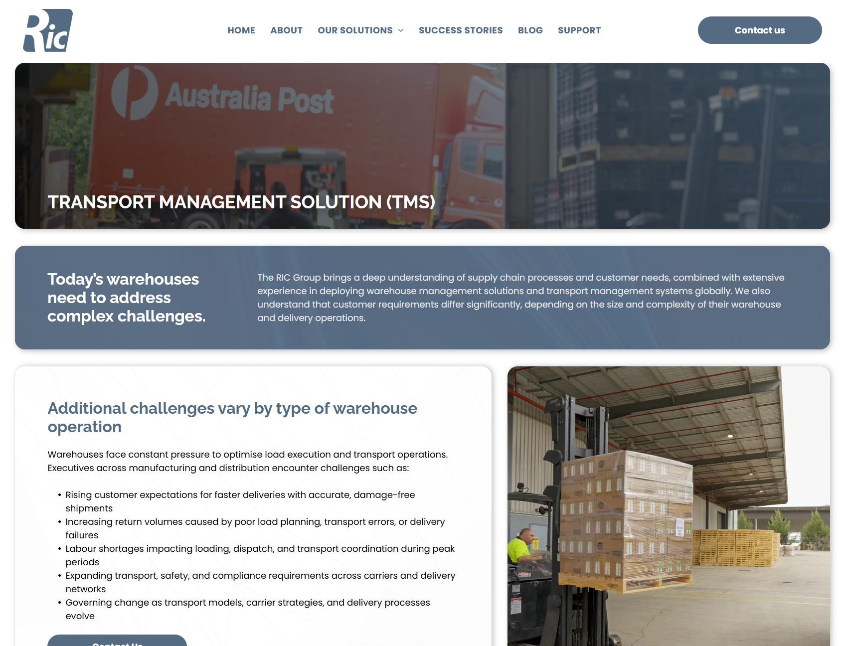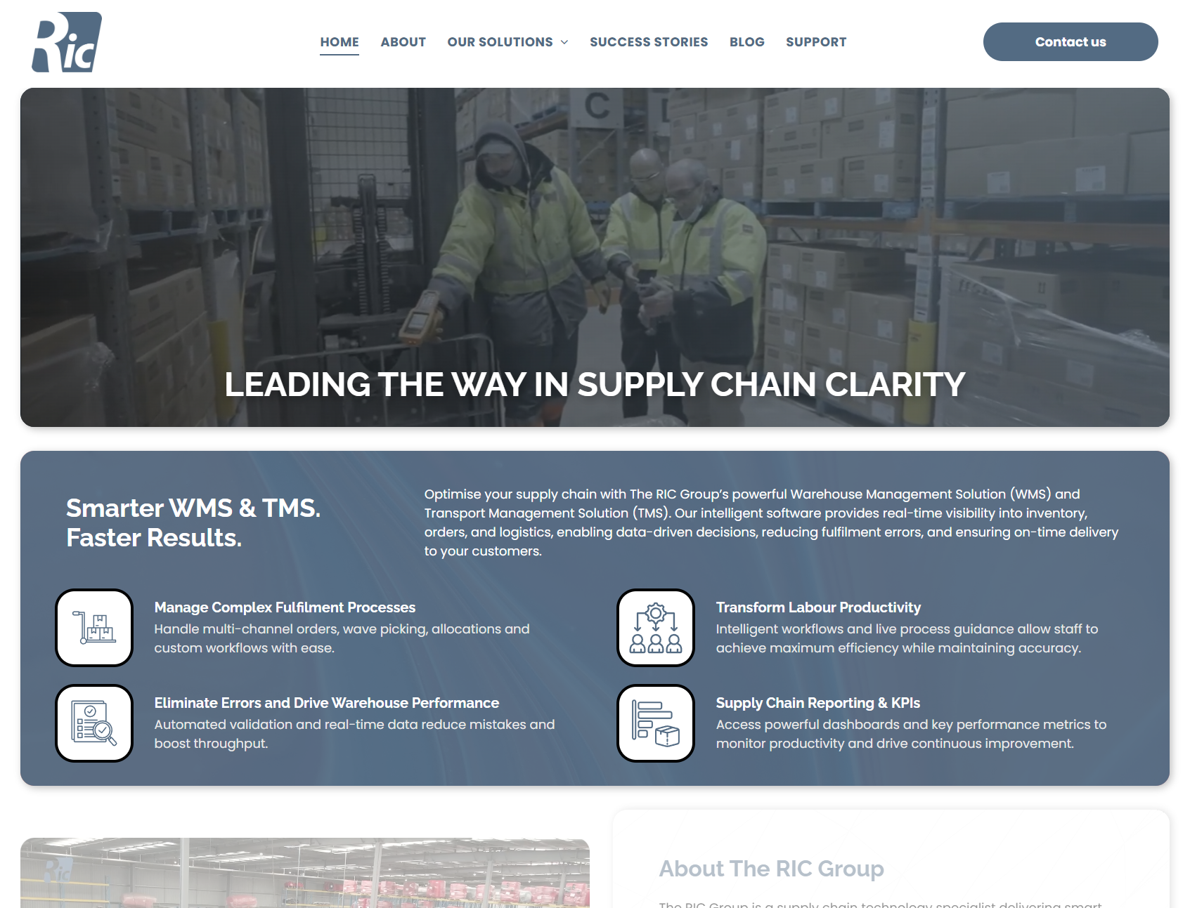 The RIC Group (TRG) is a global Software Solution Supplier for Warehouse Management Solutions (WMS) and Transport Management Solutions (TMS).